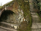 Externsteine im Teutoburger Wald: Bodenvertiefung (vermutlich Feuerstelle) in der Grotte