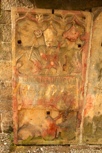 Das Foto gehört zur Serie "Klosterruine Paulinzella". Es zeigt eine Grabplatte. - - Es gelten die Hinweis für Bilder mit Motiven von Stiftungsobjekten der Stiftung Thüringer Schlösser und Gärten: Es gilt grundsätzlich, dass die Bilder ausschließlich zur Bereitstellung für Unterrichtszwecke verwendet werden dürfen. Jede Art der darüber hinausgehenden Publikation der von einem Standort innerhalb der Stiftungs-Liegenschaften aufgenommenen Motive bedarf einer gesonderten schriftlichen Genehmigung durch die Stiftung Thüringer Schlösser und Gärten.