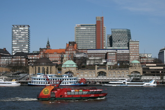 Hansestadt Hamburg: Elbe mit Sicht auf die Landungsbrücken
