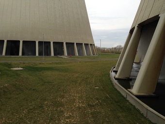 Das Foto gehört zur Serie "Braunkohlekraftwerk Lippendorf". Es zeigt den Blick auf die Sockel der Kühltürme. Es gelten die Nutzungsbedingungen der Mediothek und Pixiothek.