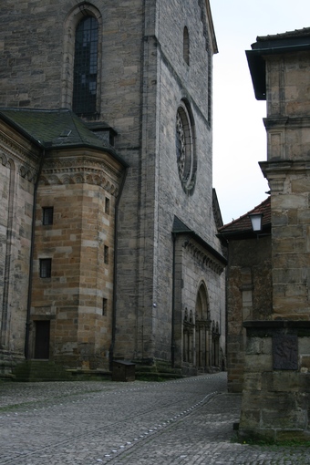 Das Foto gehört zur Serie "Bamberg". Die Altstadt der oberfränkischen Stadt Bamberg ist der größte weitgehend unversehrt erhaltene historische Stadtkern in Deutschland. Das Bild zeigt ein Detail am Dom St. Michael. Es gelten die Nutzungsbedingungen der Mediothek und Pixiothek.