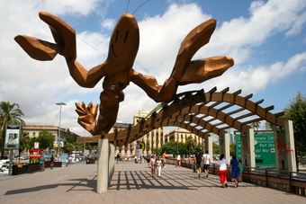 Das Foto gehört zur Serie "Barcelona". Barcelona ist die Hauptstadt Kataloniens (Provinz in Spanien) und für ihre Architektur und Kunstwerke bekannt. Das Bild zeigt das Kunstwerk einer Krabbe am Hafen. Es gelten die Nutzungsbedingungen der Mediothek und Pixiothek.