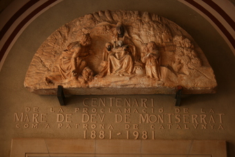 Das Bild gehört zu einer Serie mit ausgewählten Fotografien vom Kloster Santa Maria de Montserrat, nordwestlich von Barcelona. Zu sehen ist Motiv über dem Eingang zur schwarzen Madonna. Berühmt ist die Abtei durch die aus dem 12. Jahrhundert stammende Mariendarstellung „Unsere Liebe Frau von Montserrat“, oft als Schwarze Madonna bezeichnet. Darüber hinaus hat sich Montserrat als bedeutendes Zentrum der katalanischen Kultur einen Namen gemacht. Es gelten die Nutzungsbedingungen der Mediothek und Pixiothek.
