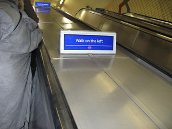 London: Hinweisschild auf der Rolltreppe