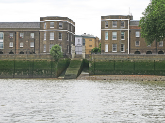 Das Foto gehört zur Serie London 2016. Es zeigt Gebäude an der Foreshore, London SE8 3AG von der Themse aus. Es gelten die Nutzungsbedingungen der Mediothek und Pixiothek.