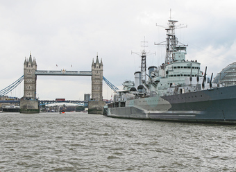Das Foto gehört zur Serie London 2016. Es zeigt die Tower Bridge und die HMS Belfast. Es gelten die Nutzungsbedingungen der Mediothek und Pixiothek.