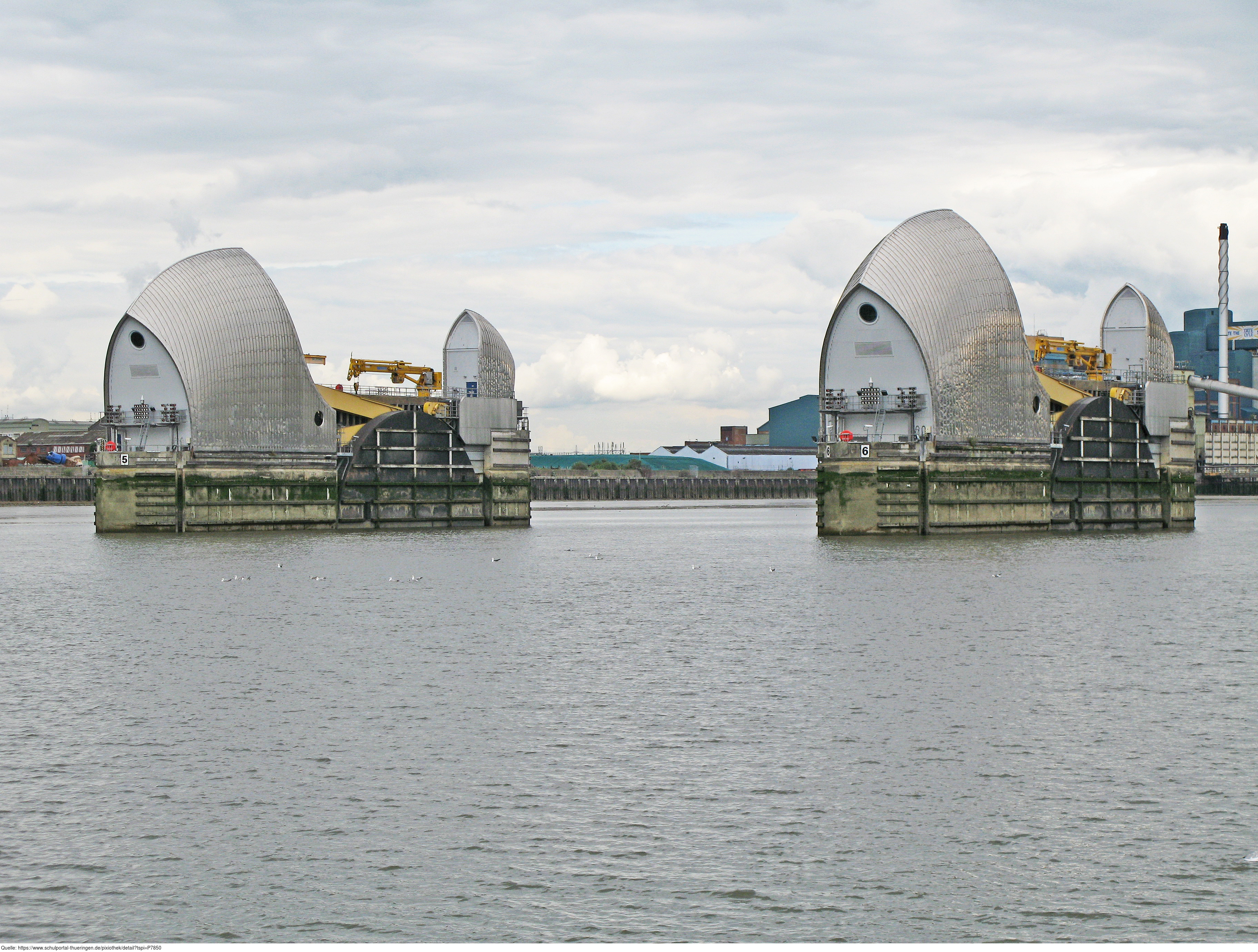 Das Foto gehört zur Serie London 2016. Es zeigt "The Thames Barrier", eines der größten Sturmflutsperrwerke der Welt. Es gelten die Nutzungsbedingungen der Mediothek und Pixiothek.