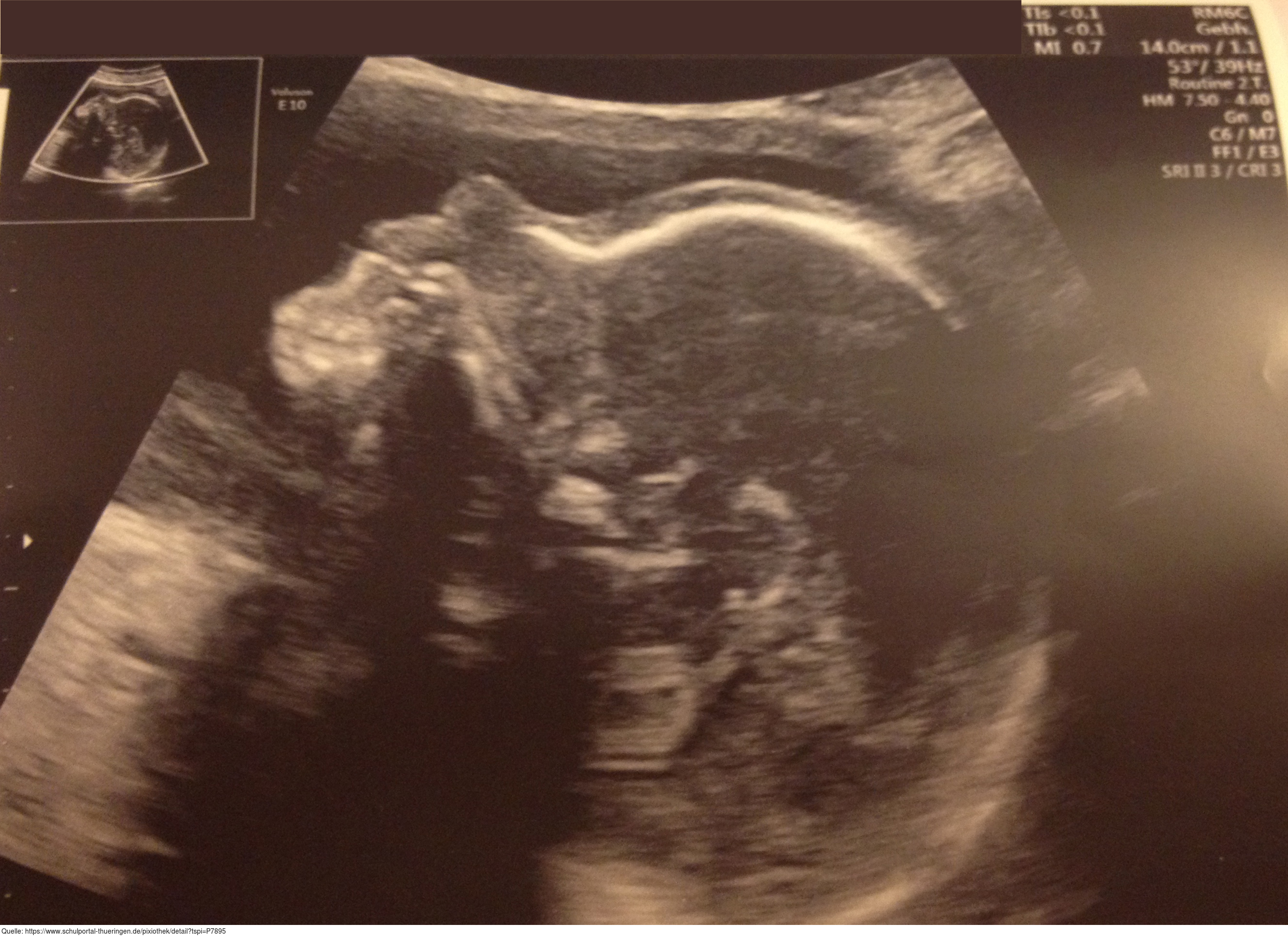Ultraschallaufnahme eines menschlichen Embryos in der 23. Schwangerschaftswoche. Es gelten die Nutzungsbedingungen der Mediothek und Pixiothek.