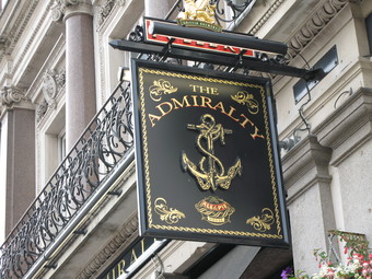 Das Foto gehört zur Serie London 2016. Es zeigt das Schild des Restaurants "The Admirality" unweit vom Trafalgar Square. Es gelten die Nutzungsbedingungen der Mediothek und Pixiothek.