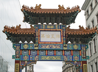 Das Foto gehört zur Serie London 2016. Es zeigt Chinatown Gate, 10 Wardour St, London W1D 6BZ. Es gelten die Nutzungsbedingungen der Mediothek und Pixiothek.