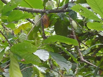 Das Foto gehört zur Serie "Kakao". Es zeigt Kakaofrüchte am Zweig. Es gelten die Nutzungsbedingungen der Mediothek und Pixiothek.