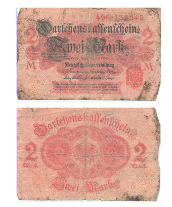 Das Foto gehört zur Serie "Währungen im Deutschen Kaiserreich 1914 bis 1918". Es zeigt einen Darlehenskassenschein über "Zwei Mark" vom 05. August 1914. Es gelten die Nutzungsbedingungen der Mediothek und Pixiothek.