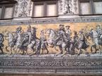 Das Foto gehört zur Serie "Dresdener Fürstenzug". Es zeigt den Abschnitt 1464 bis 1547 - Ernst der Sanftmütige, Albrecht der Beherzte, Friedrich der Weise, Johann der Beständige. Der Fürstenzug in Dresden ist das Bild eines Reiterzuges, aufgetragen auf rund 23.000 Fliesen aus Meißner Porzellan auf der Außenwand des Stallhofs in der Augustusstraße. Das 102 Meter lange Kunstwerk stellt die Ahnengalerie der zwischen 1127 und 1873 in Sachsen herrschenden Markgrafen, Herzöge, Kurfürsten und Könige aus dem Geschlecht des Fürstenhauses Wettin dar. Es gelten die Nutzungsbedingungen der Mediothek und Pixiothek.