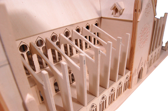 Das Foto gehört zur Serie "Modell Notre-Dame de Paris". Es zeigt eine Detailansicht des Modells. Es gelten die Nutzungsbedingungen der Mediothek und Pixiothek.