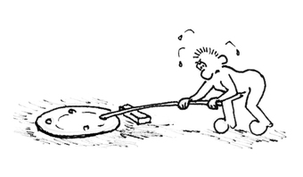 Das Foto gehört zur Serie "Paul". Es zeigt Paul mit einem Hebel. Er will einen Gullydeckel abheben. Das Bild ist unter CC0 lizenziert und kann somit frei verwendet werden.