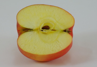 Das Foto gehört zur Serie "Obst". Es zeigt einen halbierten Apfel der Sorte Elstar. Das Bild ist unter CC0 lizenziert und kann somit frei verwendet werden.