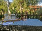 Tisch mit Gläsern, Karaffen und Äpfeln
