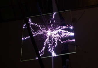 Das Foto zeigt Entladungsblitze bei einem Hochspannungsexperiment. Das Bild ist unter CC0 lizenziert und kann somit frei verwendet werden.