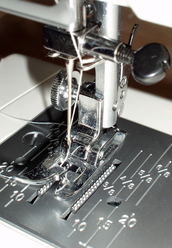 Das Foto gehört zur Serie "Gestalten". Es zeigt die Stichplatte einer Nähmaschine. Das Bild ist unter CC0 lizenziert und kann somit frei verwendet werden.