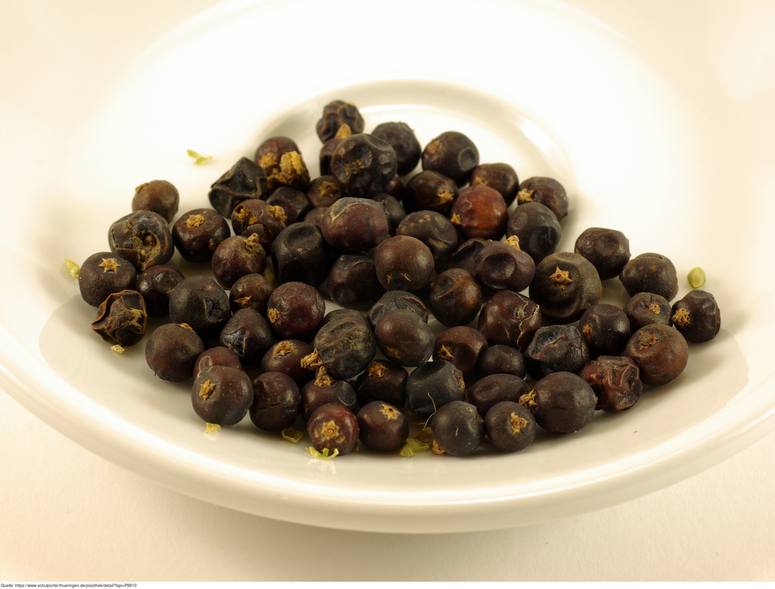 Das Foto gehört zur Serie "Gewürze". Es zeigt schwarze Pfefferkörner. Die Früchte vom Pfefferstrauch (Piper nigrum) werden wegen des darin enthaltenen Alkaloids Piperin als scharf schmeckendes Gewürz verwendet. Das Bild ist unter CC0 lizenziert und kann somit frei verwendet werden.