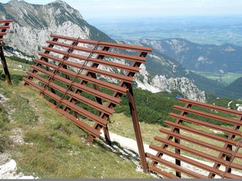Das Bild gehört zur Serie "Alpen". Es zeigt Stahlschneebrücken zum Schutz vor Lawinen. Das Bild ist unter CC0 lizenziert und kann somit frei verwendet werden.