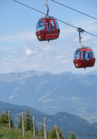 Das Bild gehört zur Serie "Alpen". Es zeigt zwei Gondeln einer Seilbahn. Das Bild ist unter CC0 lizenziert und kann somit frei verwendet werden.