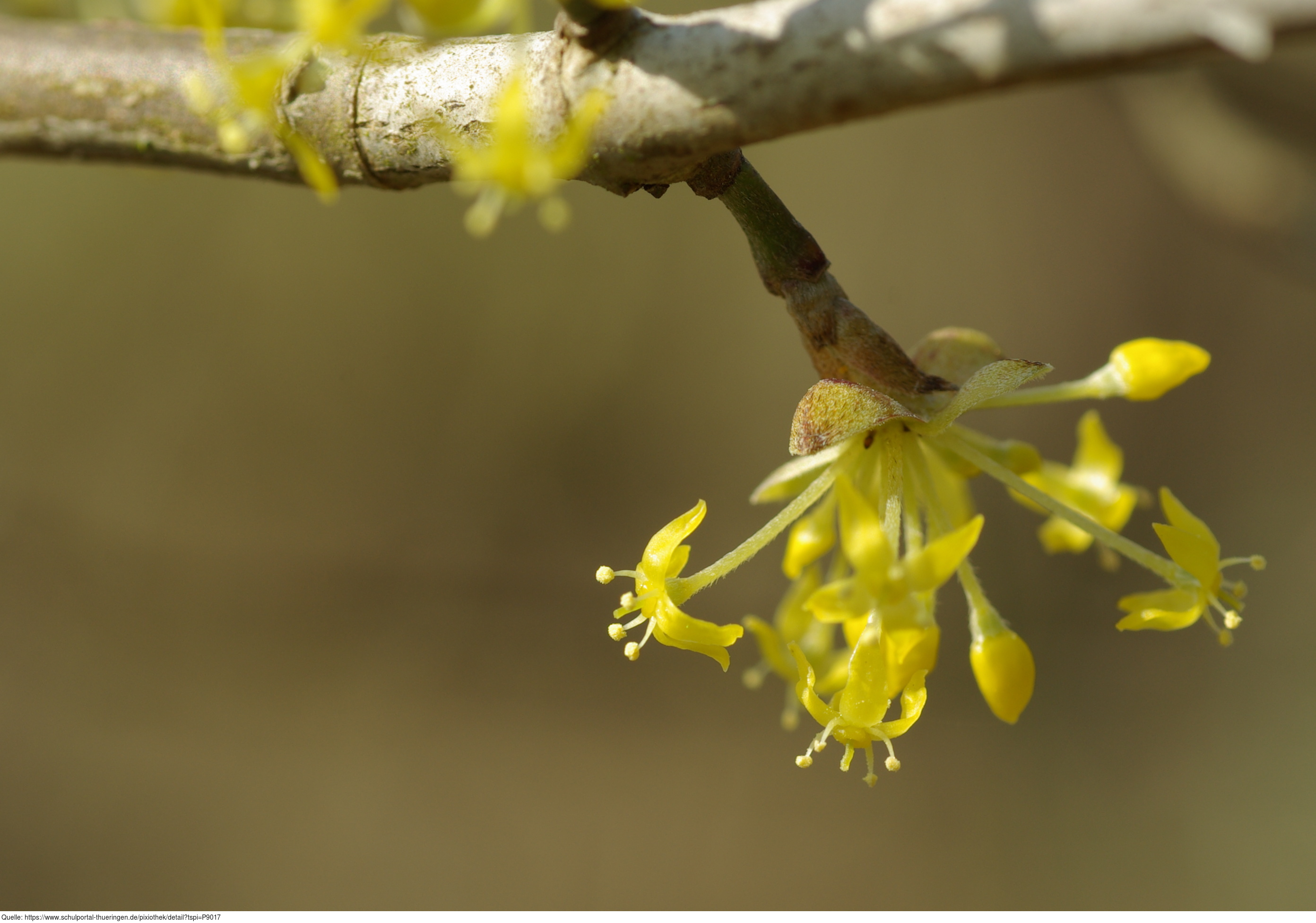 Das Foto gehört zur Serie "Laubbäume". Es zeigt Blüten einer Kornelkirsche (Cornus mas), auch Herlitze, Dürlitze, Hirlnuss genannt. Das Bild ist unter CC0 lizenziert und kann somit frei verwendet werden.