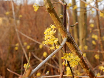 Das Foto gehört zur Serie "Laubbäume". Es zeigt eine blühende Kornelkirsche (Cornus mas), auch Herlitze, Dürlitze, Hirlnuss genannt. Das Bild ist unter CC0 lizenziert und kann somit frei verwendet werden.