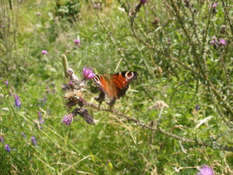Das Foto gehört zur Serie "Blüten". Es zeigt ein Tagpfauenauge (Aglais io, Syn.: Inachis io, Nymphalis io), ein Schmetterling (Tagfalter) aus der Familie der Edelfalter (Nymphalidae). Das Bild ist unter CC0 lizenziert und kann somit frei verwendet werden.