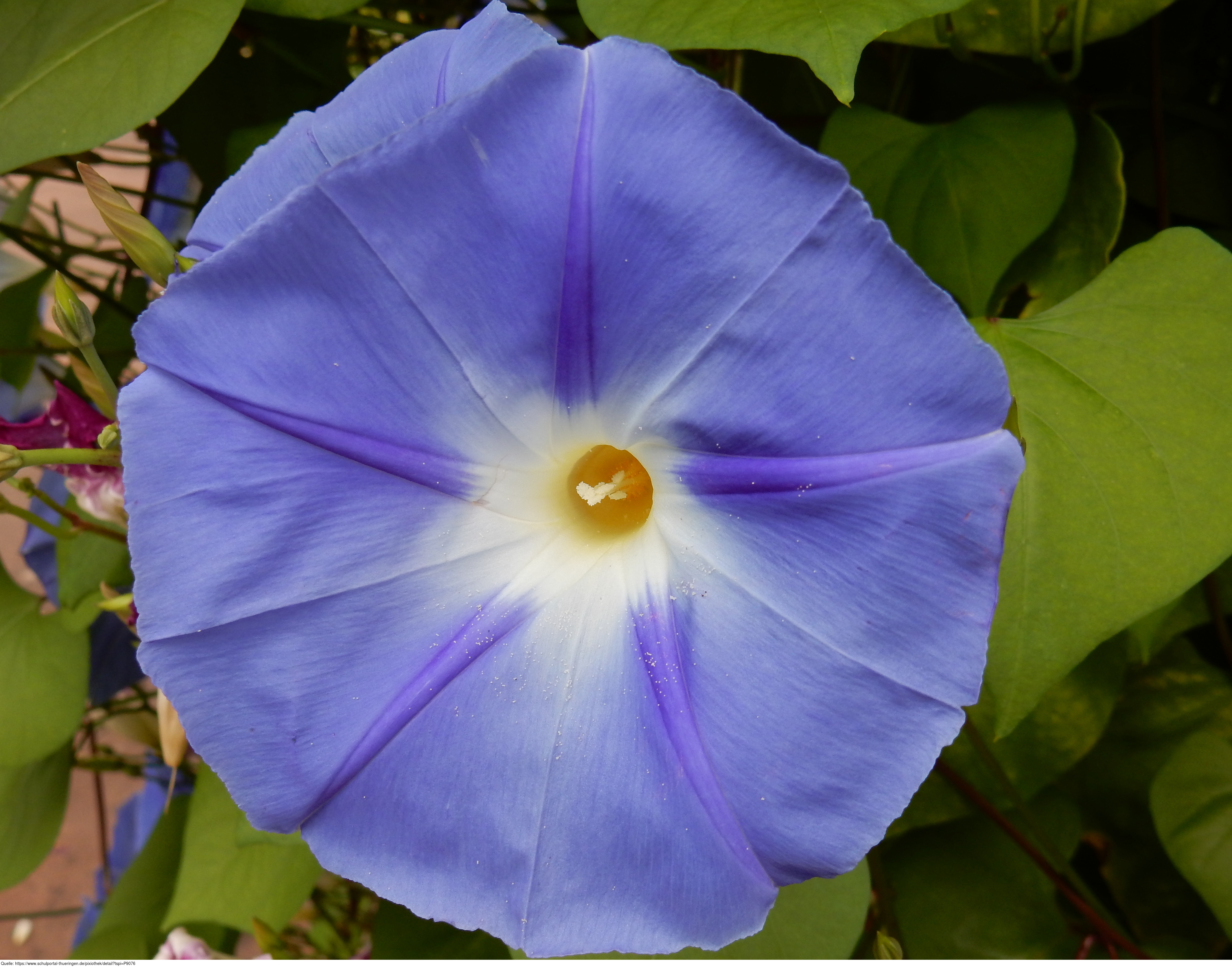 Das Foto gehört zur Serie "Blüten von Blumen". Es zeigt eine Blüte der Purpur-Prunkwinde (Ipomoea purpurea). Prunkwinden sind auch als Prachtwinden bekannt. Das Bild ist unter CC0 lizenziert und kann somit frei verwendet werden.