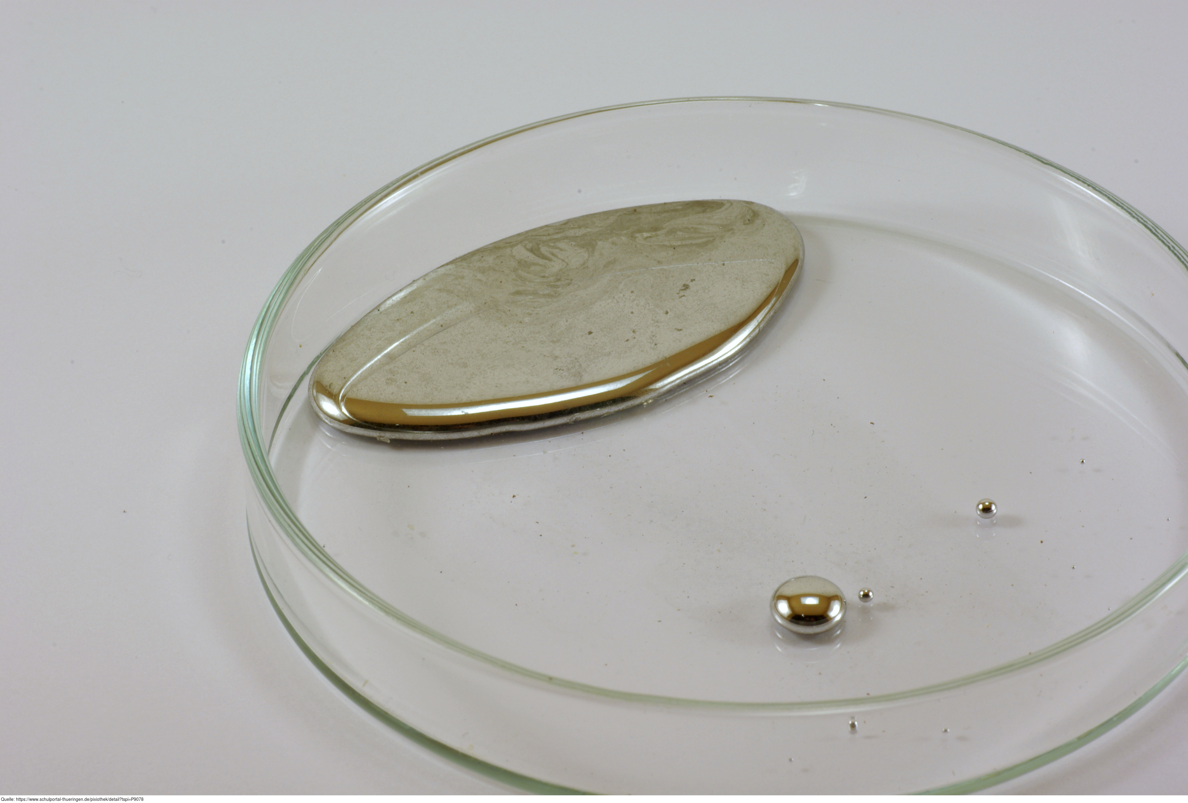 Das Foto gehört zur Serie "Chemische Elemente". Es zeigt Quecksilber in einer Petrischale. Das Bild ist unter CC0 lizenziert und kann somit frei verwendet werden.