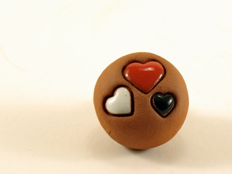Das Bild gehört zur Serie "Gestalten". Es zeigt einen Deko-Knubbel aus Ton mit farbigen Herzchen. Das Bild ist unter CC0 lizenziert und kann somit frei verwendet werden.