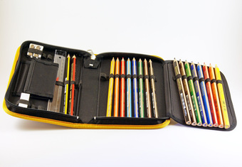 Das Bild gehört zur Serie "Schreibwaren". Es zeigt eine geöffnete Federtasche. Das Bild ist unter CC0 lizenziert und kann somit frei verwendet werden.