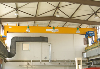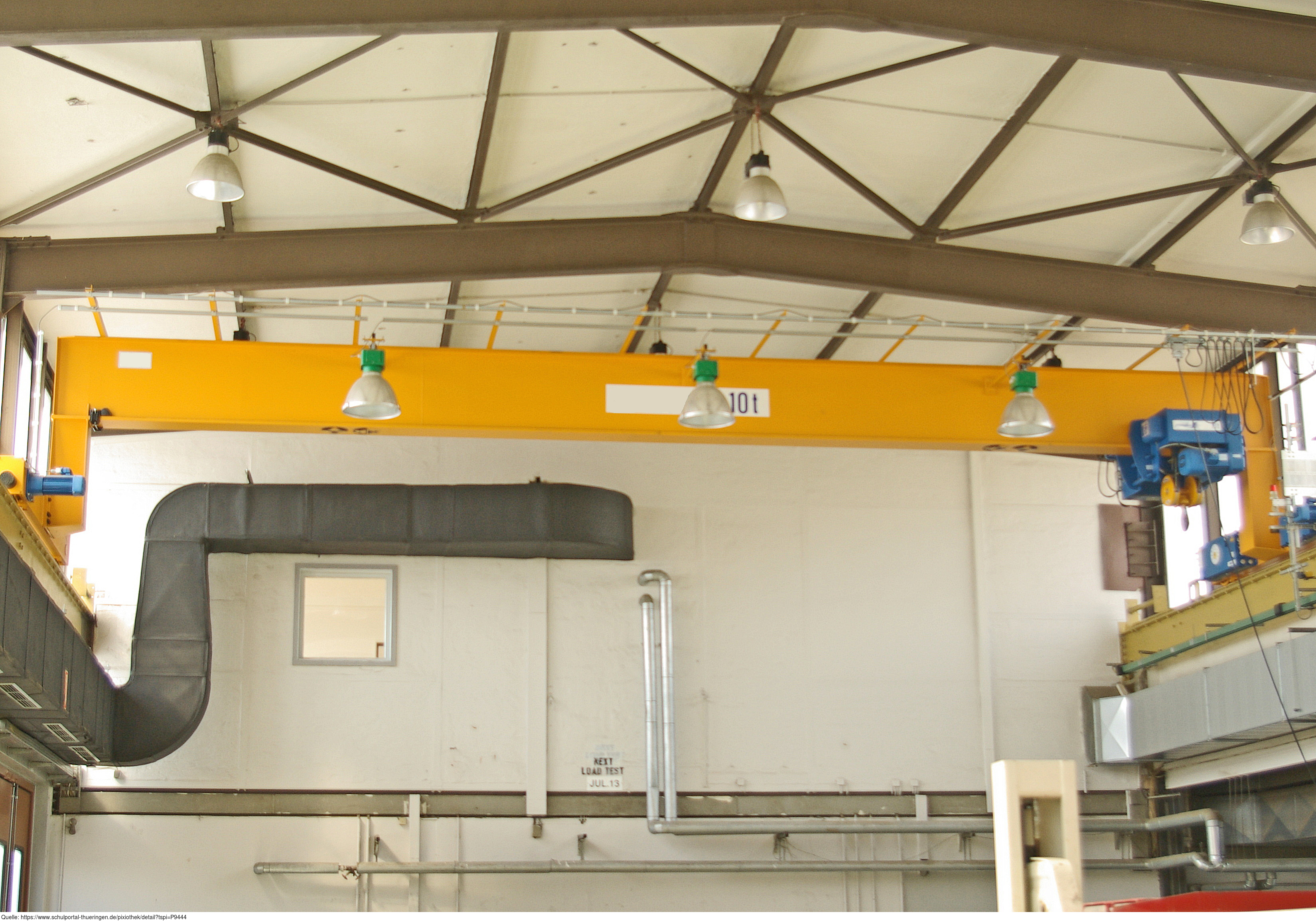 Das Foto gehört zur Serie "Hebezeuge". Es zeigt einen Portalkran bzw. Laufkran in einer Montagehalle. Das Bild ist unter CC0 lizenziert und kann somit frei verwendet werden.
