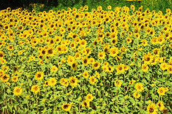 Das Foto gehört zur Serie "Blüten von Blumen". Es zeigt ein Feld mit Sonnenblumen (Helianthus annuus), auch Gewöhnliche Sonnenblume genannt, eine Pflanzenart aus der Familie der Korbblütler (Asteraceae). Das Bild ist unter CC0 lizenziert und kann somit frei verwendet werden.