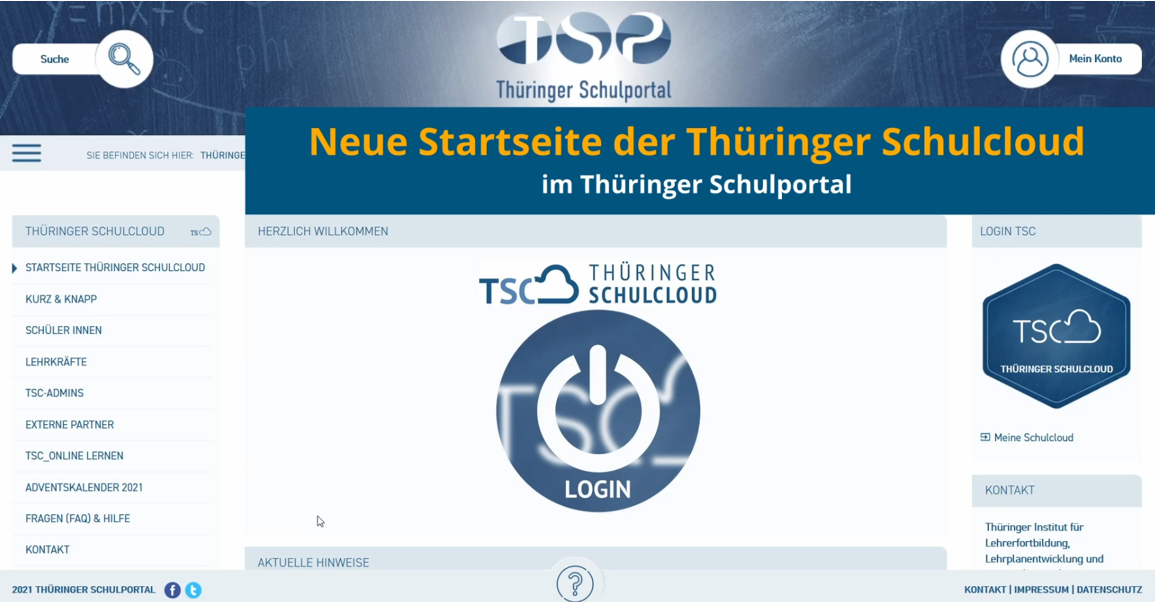 TIPP 01: DIE WILLKOMMENSSEITE DER THÜRINGER SCHULCLOUD IM THÜRINGER SCHULPORTAL
