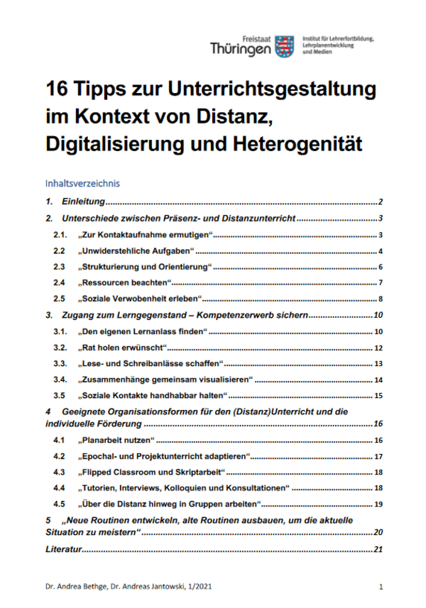 Bereits zum Jahreswechsel 2020/21 entstanden die 16 Tipps zur Unterrichtsgestaltung im Kontext von Distanz,