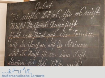 Die kulturtechnische Fertigkeit des Schreibens sowie der künstlerische Aspekt dieser Schrift können die Teilnehmenden beim Erlernen der einzelnen Buchstaben, spielerischen Lese- und Schreibaufgaben erproben. Am Ende der Veranstaltung können alle ihren handgeschriebenen Namen in Kurrentschrift mit nach Hause nehmen.
